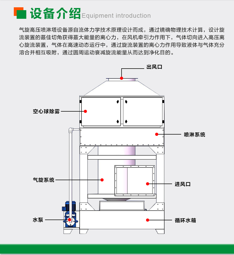雙級氣旋噴淋塔設備介紹: