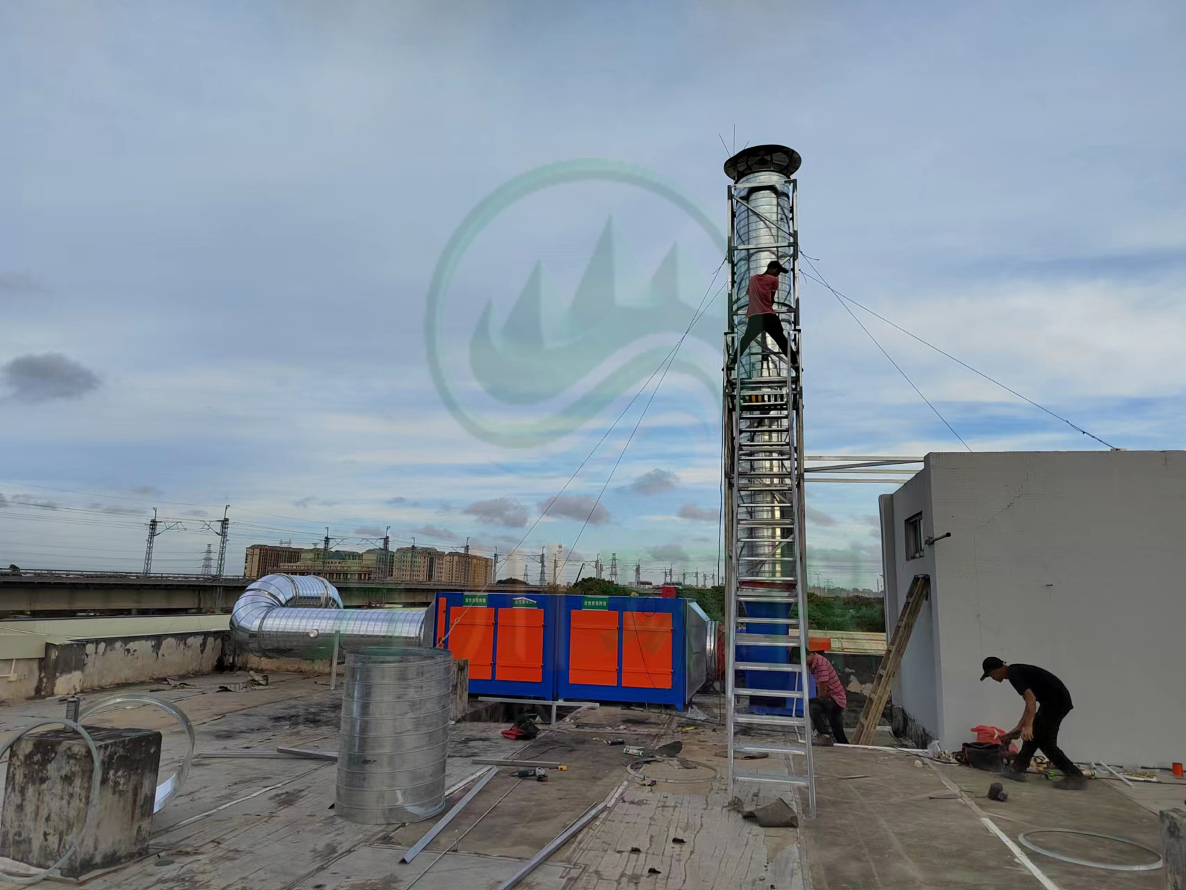 根據(jù)廢氣類型和場地需求我們采用兩級活性炭吸附法對其進行處理。配套兩臺1萬風量的碳鋼材質(zhì)活性炭吸附塔與大功率離心風機,自帶自動化控制系統(tǒng)。