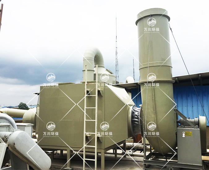 由于廢氣中含有一定的顆粒物,因此廢氣首先進(jìn)到噴淋塔在進(jìn)一步除去顆粒物和水溶性物質(zhì),而后進(jìn)入到除霧器,過(guò)濾未完全凈化水分,而后進(jìn)入U(xiǎn)V光氧凈化器,最后再進(jìn)行活性炭吸附裝置,該法具有處理效果高,運(yùn)行穩(wěn)定優(yōu)點(diǎn)。