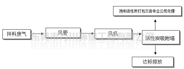 拌料固化產生的屬于揮發(fā)性的有機廢氣,通過車間內合理布管,由引風機抽至車間外處理后排放,處理能力為18000m3/h,系統(tǒng)設于車間樓頂。