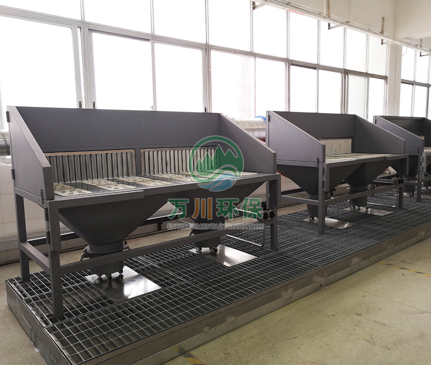 打磨臺是一種集工作臺與打磨、切割粉塵處理裝置為一體的環保設備。打磨臺適用于中小型精細加工、不規則部件加工工況。打磨臺可有效捕集懸浮的細小塵埃,給工人提供潔凈健康的工作環境,并且可搭配濾筒除塵和布袋除塵器一起使用。